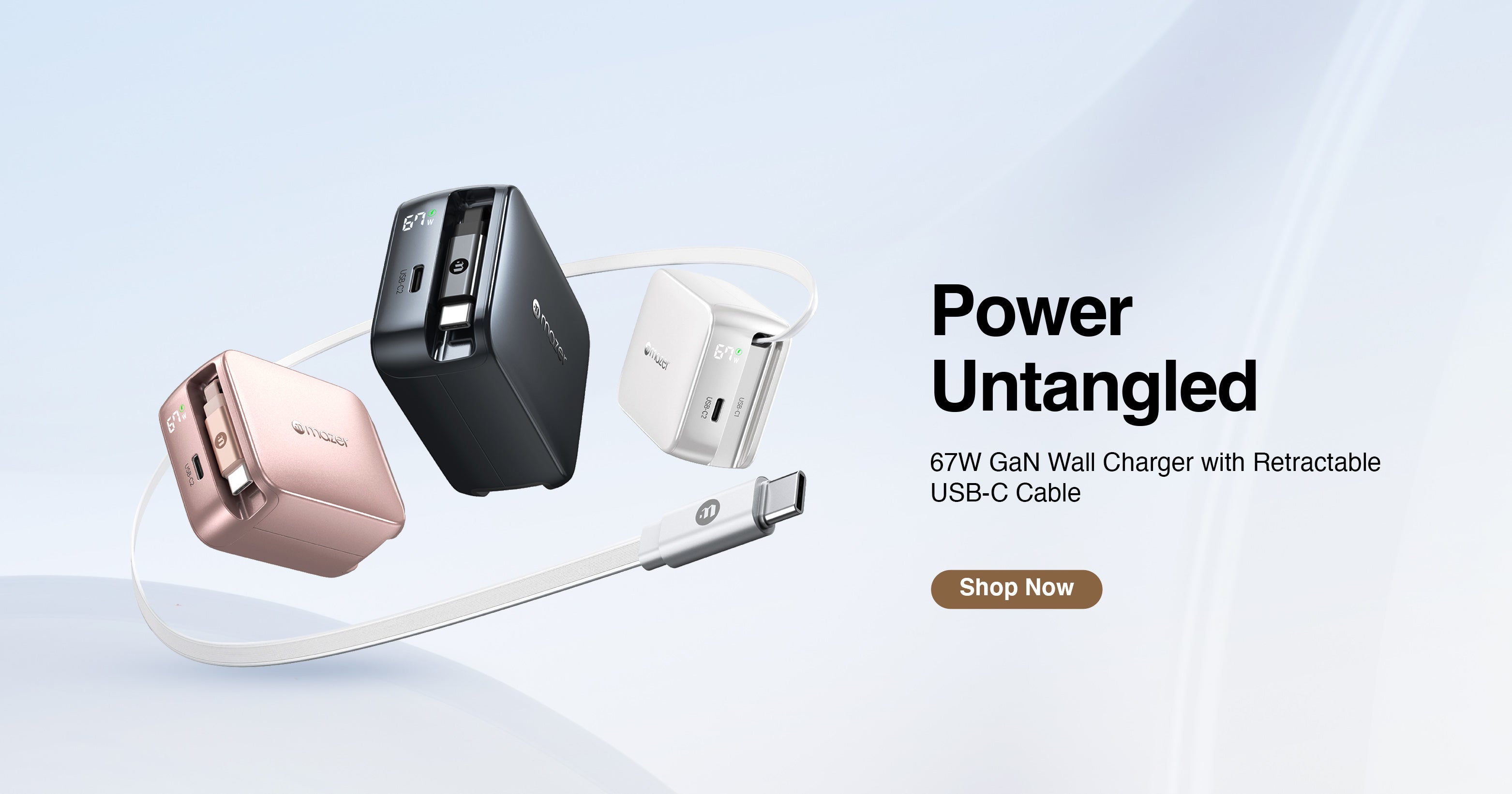 PrestigeGaN R 67W GaN Wall Charger with Retractable USB-C Cable