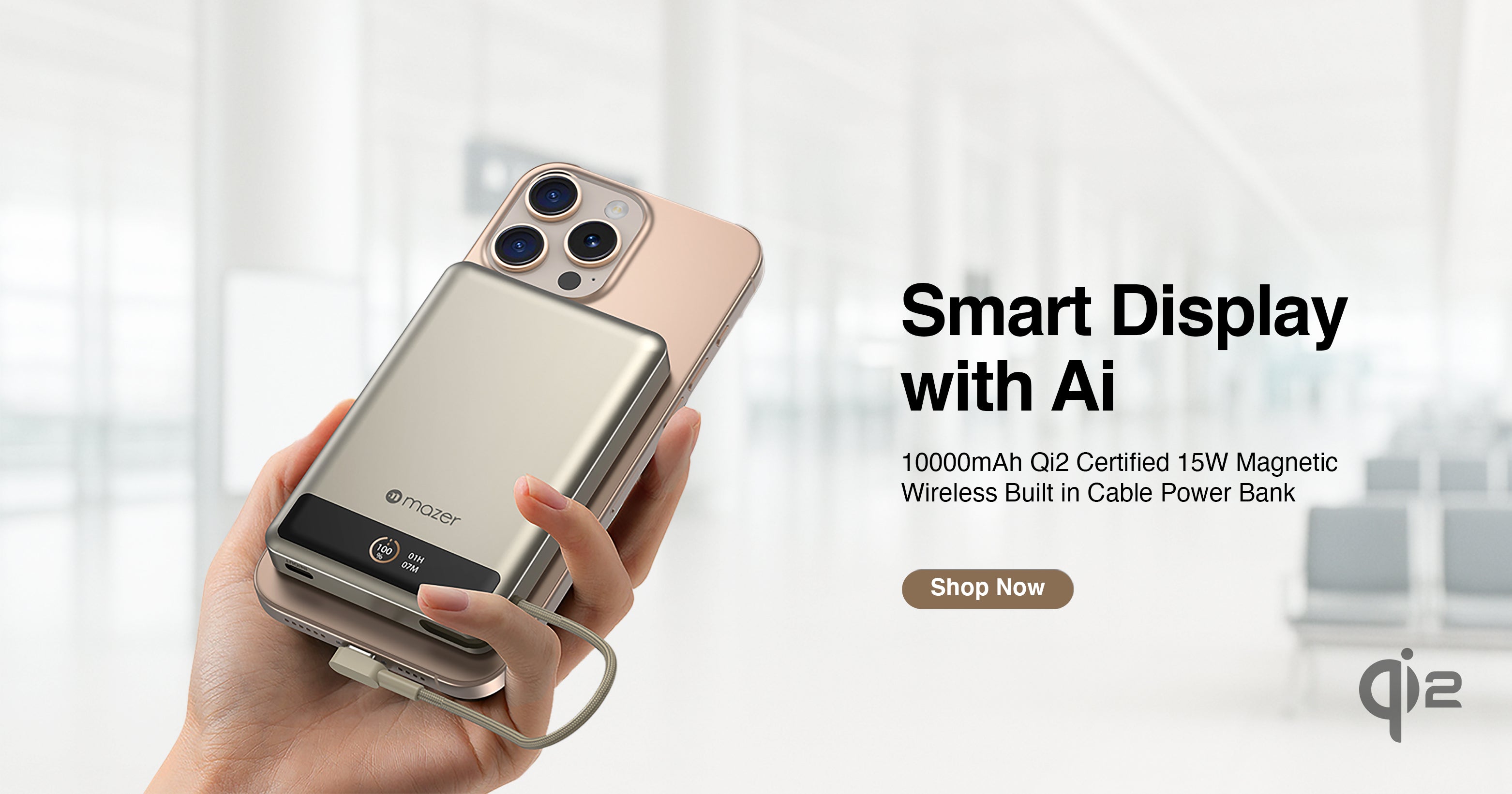 MagLink70 10,000 mAh Qi2 Certified 15W Magnetic Wireless Power Bank with Built in USB-C Cable (CCC Certified)